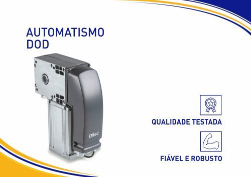 Automatismo da Ditec de instalação simples e rápida, adaptável a qualquer estrutura. Ditec DOD é o automatismo lateral para portões seccionados de grandes dimensões (indutria) concebido para se adaptar a qualquer instalação. Inclui a possibilidade de desbloqueio manual, por corrente ou por barra. Disponível a versão monofásica com motor de 230V e a versão trifásica com motor de 400V. DOD, o automatismo para portões de grandes dimensões ou de elevado peso. Consulte-nos temos o automatismo Ditec adequado ao seu negócio.